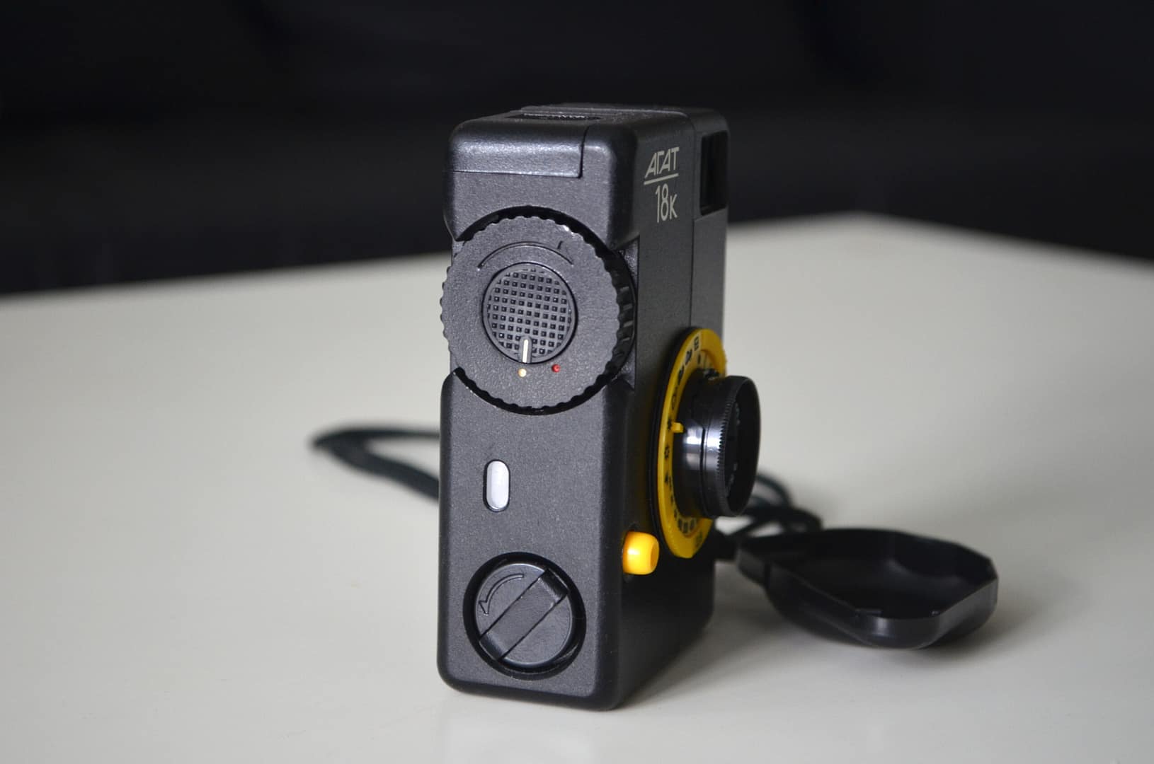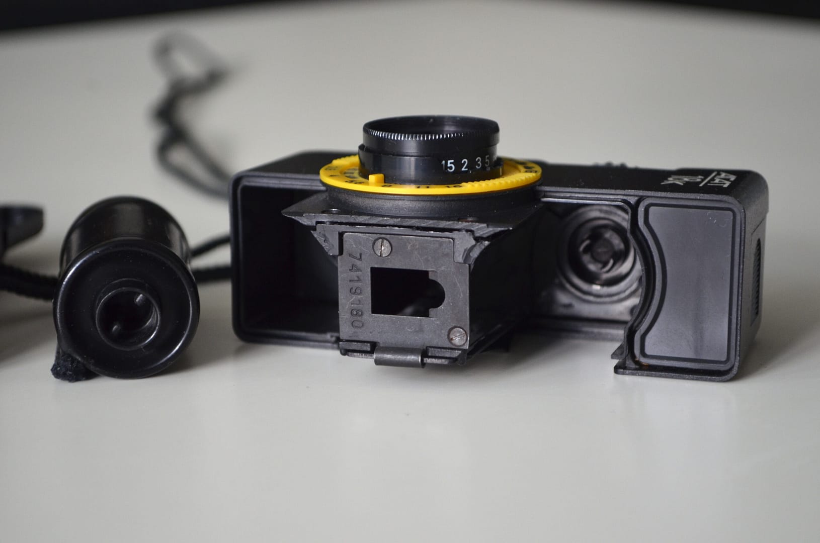 - Cocking knob: also winds the film, double exposure prevention, on the left of the camera